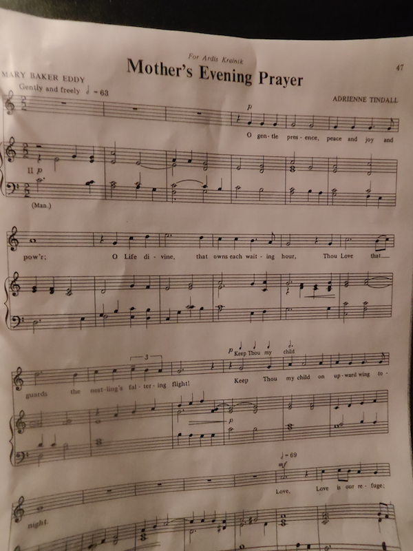So I'm looking a month ago for a solo setting of a specific text: Mary Baker Eddy's "Mother's Evening Prayer".